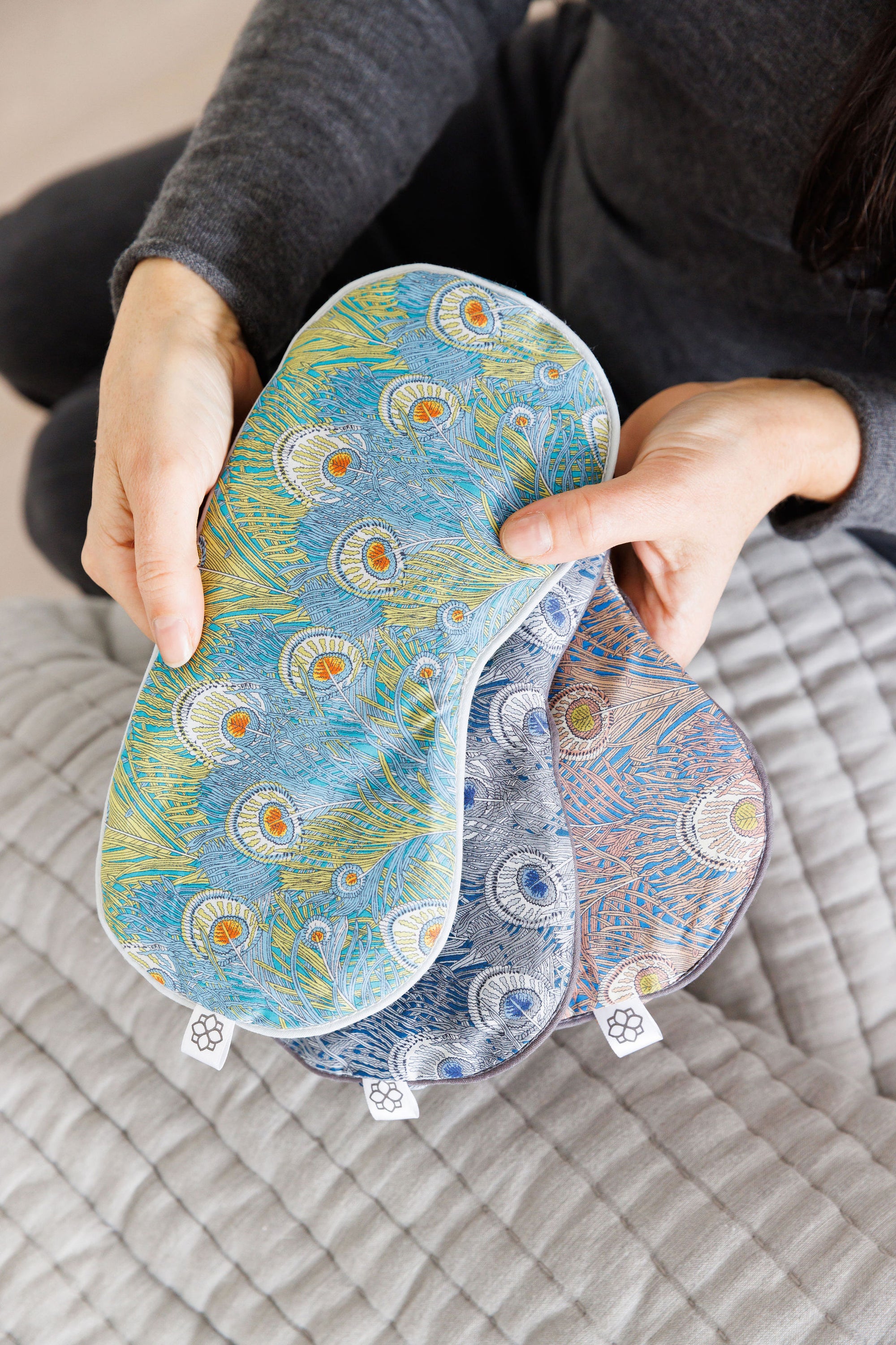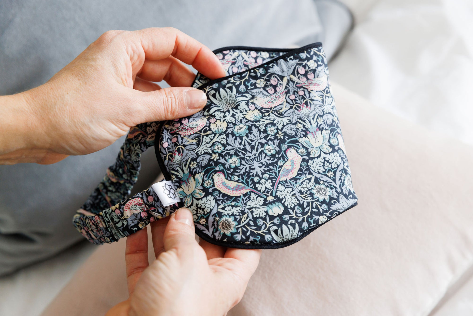 "This sleep mask is made of a beautiful patterned, light and silky material, with an aromatherapy scent of lavender which is deeply relaxing. I use it for better sleep, meditation, general relaxation and yoga practice. I find the mask calming, practical and versatile, with the removable cover and inner pad, which can be heated in winter or cooled in summer. It also comes with a handy storage bag."